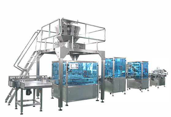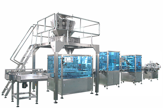 理罐→原料輸送 →自動(dòng)稱重/計(jì)數(shù)→自動(dòng)定位罐裝→自動(dòng)上蓋旋蓋→鋁箔封口→貼標(biāo)→噴碼→成品